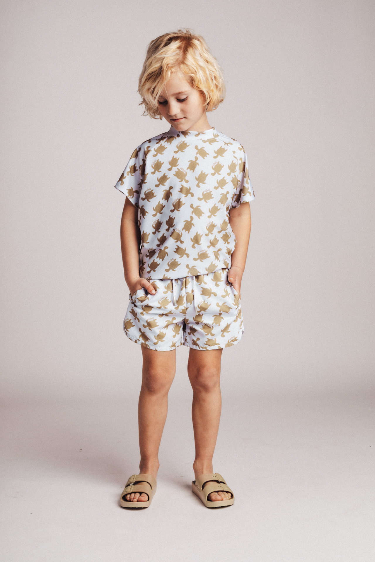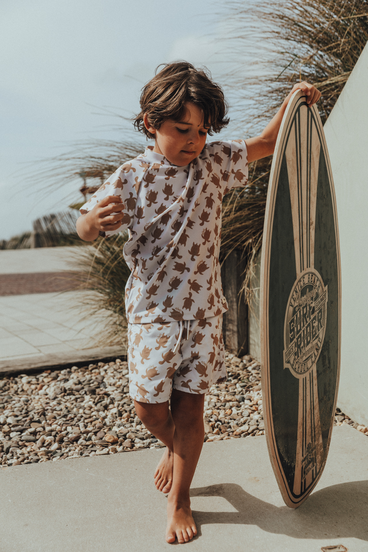 ProductomschrijvingComfortabel zwem t-shirt met korte mouwen, perfect voor extra zonbescherming tijdens het spelen en zwemmen. De zachte, stretchy stof zorgt voor een fijne pasvorm en optimale bewegingsvrijheid ideaal voor zonnige dagen aan het water. Materiaal: 100% polyester