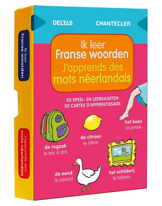 In deze doos zitten 50 kleurrijke kaarten die goed zijn voor urenlang speel- en leerplezier! Hierop staan 200 Franse woorden met hun Nederlandse vertaling die elk duidelijk geïllustreerd zijn. Bovendien zijn de woorden ingedeeld in thema's zoals het huis, de klas, voertuigen, groenten en fruit... Spelenderwijs raak je vertrouwd met de woordenschat en kun je deze veel makkelijker onthouden!