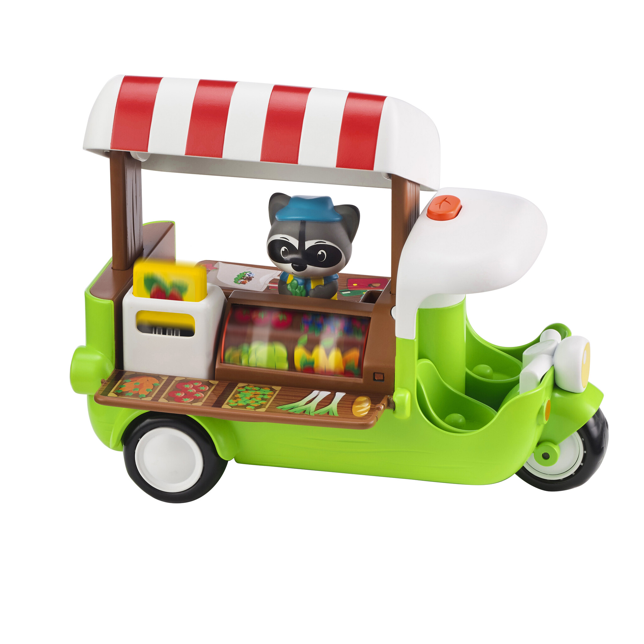 Zodra het dak van deze foodtruck met een ‘POP’ opengaat, zie je de heerlijkste groenten en fruitsoorten al liggen. Maak je keuze en vergeet daarna niet om af te rekenen. Met een druk op de knop verschijnt met een ‘POP’ het verschuldigde bedrag al op de kassa. Neem je boodschappen tenslotte mee in de handige trolley.
