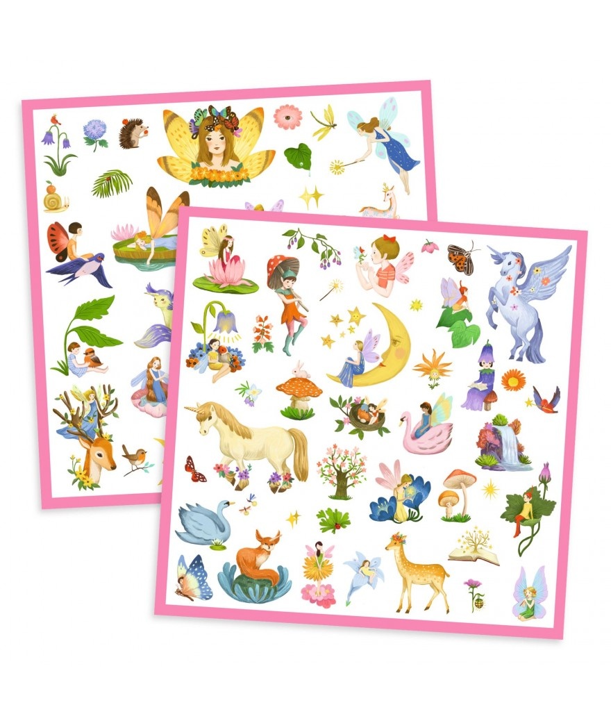 Een mapje met 160 metallic stickers over het thema een fantasiewereld. Kabouters, elfjes, eenhoorns en bosgeesten... Welkom in een fantasiewereld. Het kind plakt de talloze stickers naar wens om zelf taferelen te maken of gebruikt ze om dingen te versieren!