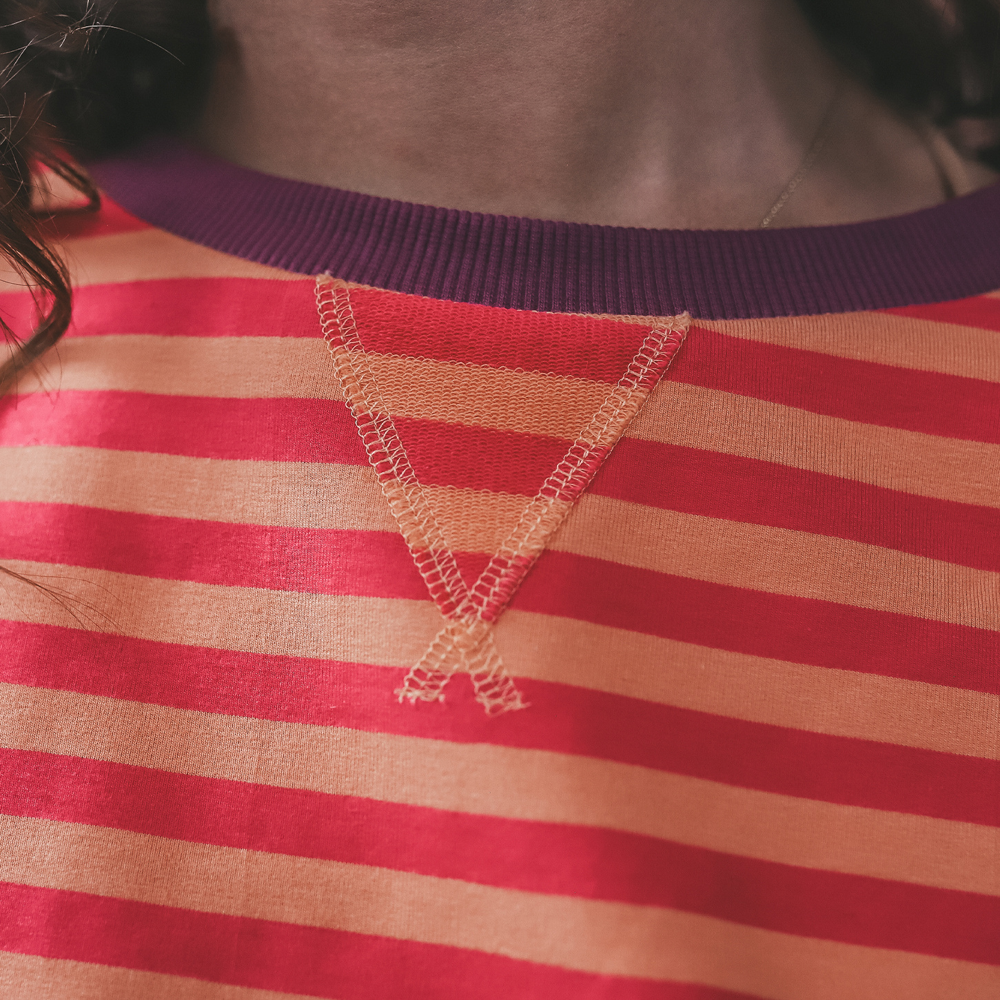 Stripe French knit sweater mom - Beetroot purple