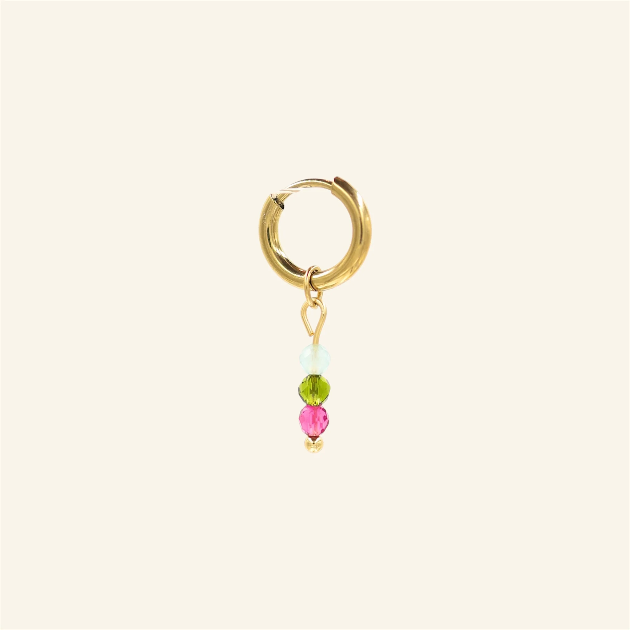 Het ringetje van deze prachtige oorbel heeft een diameter van 8 millimeter. De oorbel is gemaakt van premium stainless steel, waardoor het niet zal verkleuren. Je kunt er dus gerust mee douchen, zwemmen, etc! 100% waterproof.