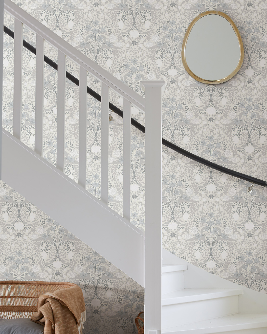 Een mooi bloemenbehang zachte rustige tinten dat een klassieke elegantie geeft aan alle ruimtes. Je kunt niet anders dan verdwijnen in het patroon en wegdromen naar een nazomeravond aan het water. De zachte kleuren van het behang creëren een ontspannen oase in je keuken, woonkamer of slaapkamer.