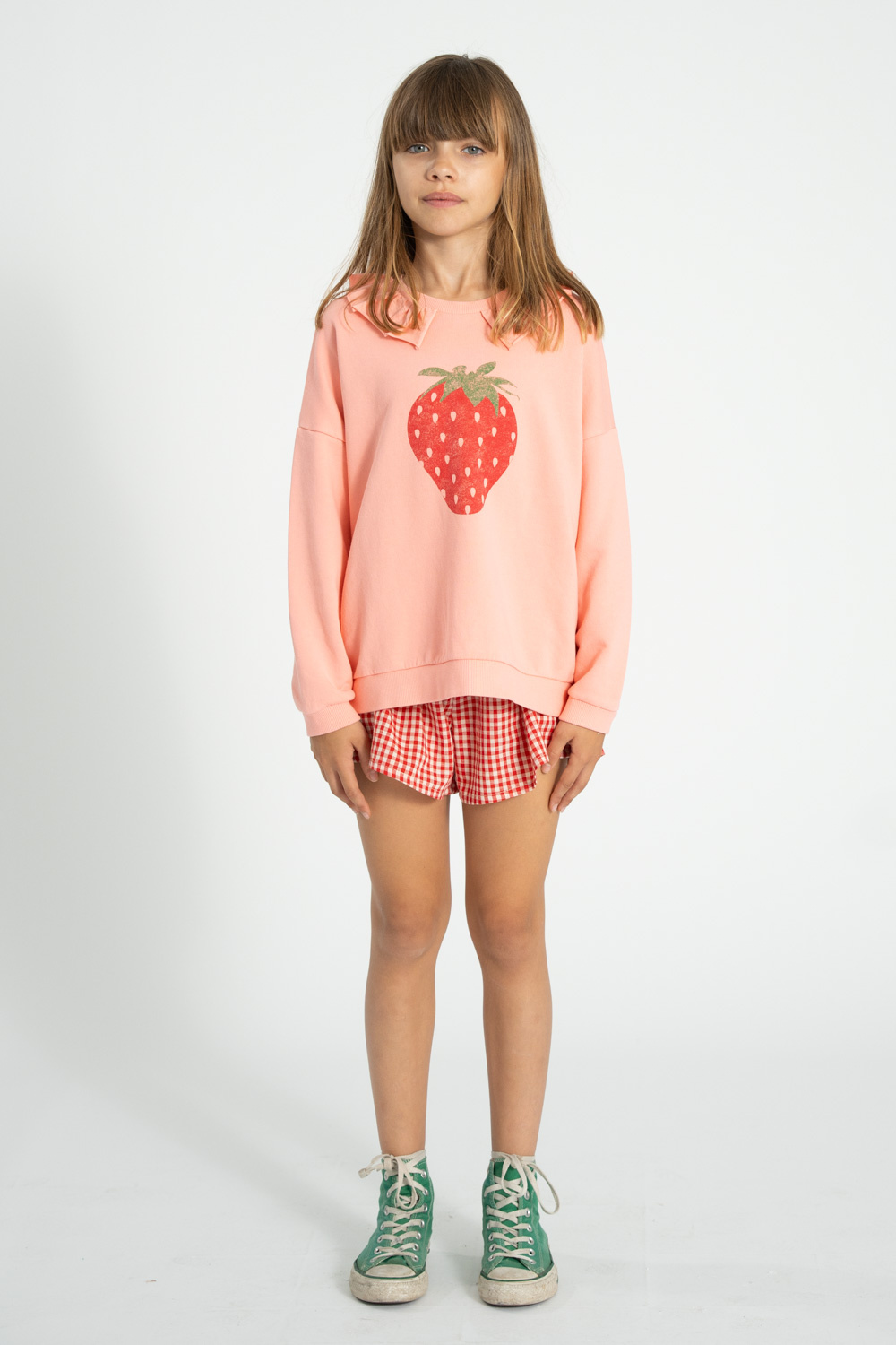 Sweatshirt w/ collar - Light pink w/ strawberry print