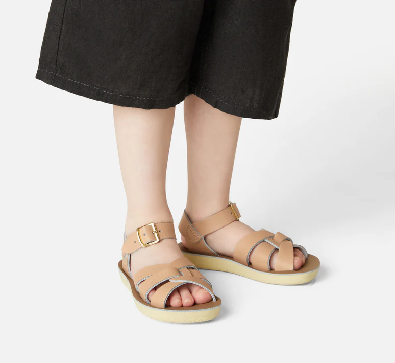 Zoals bij alle Salt-Waters kunnen deze geweven leren sandalen met open neus in het water worden gedragen. Ze zijn voorzien van roestvrije gespen, een duurzame rubberen zool en een verstelbaar enkelbandje.