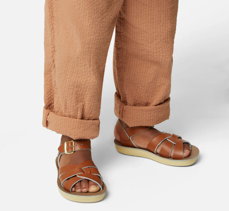 Zoals bij alle Salt-Waters kunnen deze geweven leren sandalen met open neus in het water worden gedragen. Ze zijn voorzien van roestvrije gespen, een duurzame rubberen zool en een verstelbaar enkelbandje.