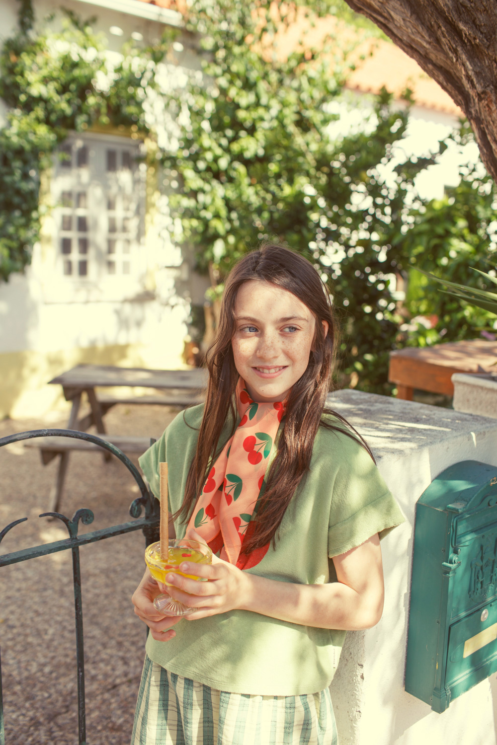 T-shirt - Light olive w/ cherry print