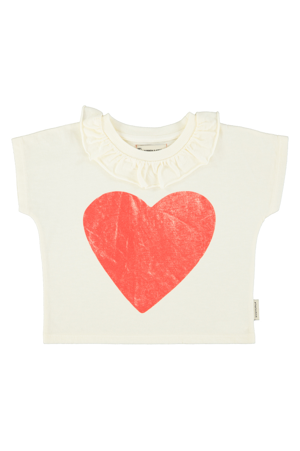 T-shirt w/ collar - Ecru w/ red heart print