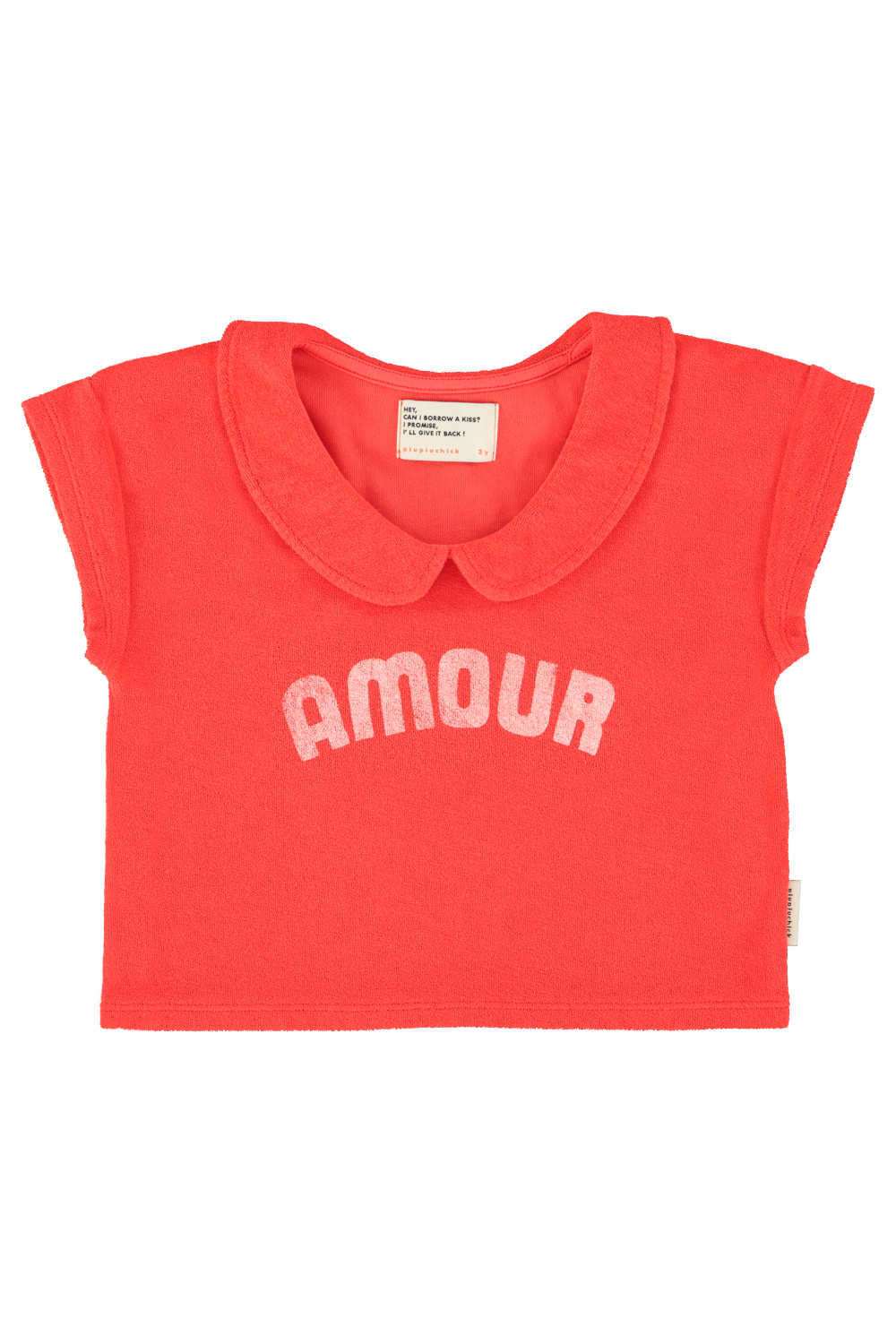 T-shirt w/ Peter Pan collar - Red w/ "amour" print