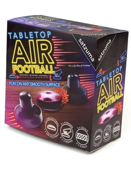 Met de Tabletop Air Football-set kun je elke gladde tafel als speelveld gebruiken, met behulp van een puck die over een luchtbed glijdt, twee gedempte spitsen en elk een zuignapdoel.