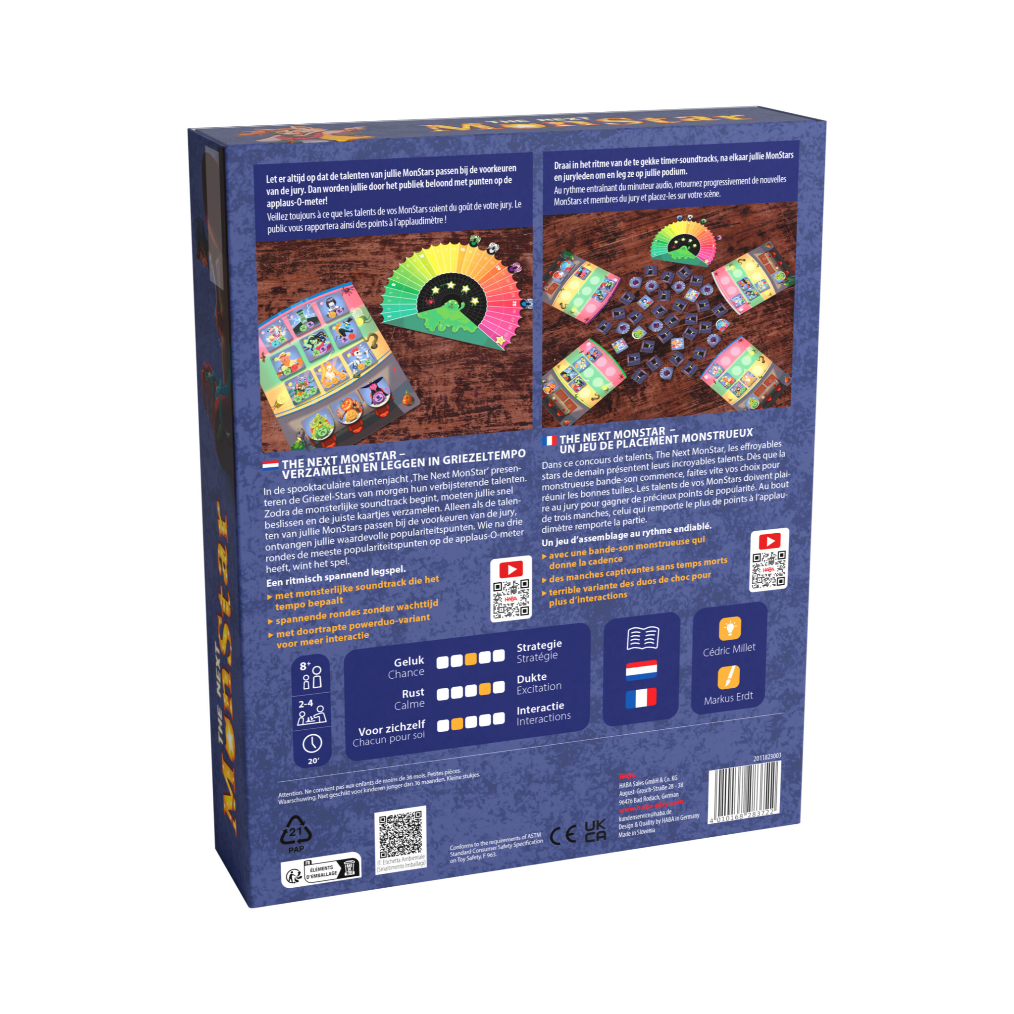 Wie na drie rondes de meeste punten op de applausmeter heeft, wint de wedstrijd. The Next MonStar zorgt voor snelle en spannende rondes zonder wachttijd, ideaal voor 2 tot 4 spelers.