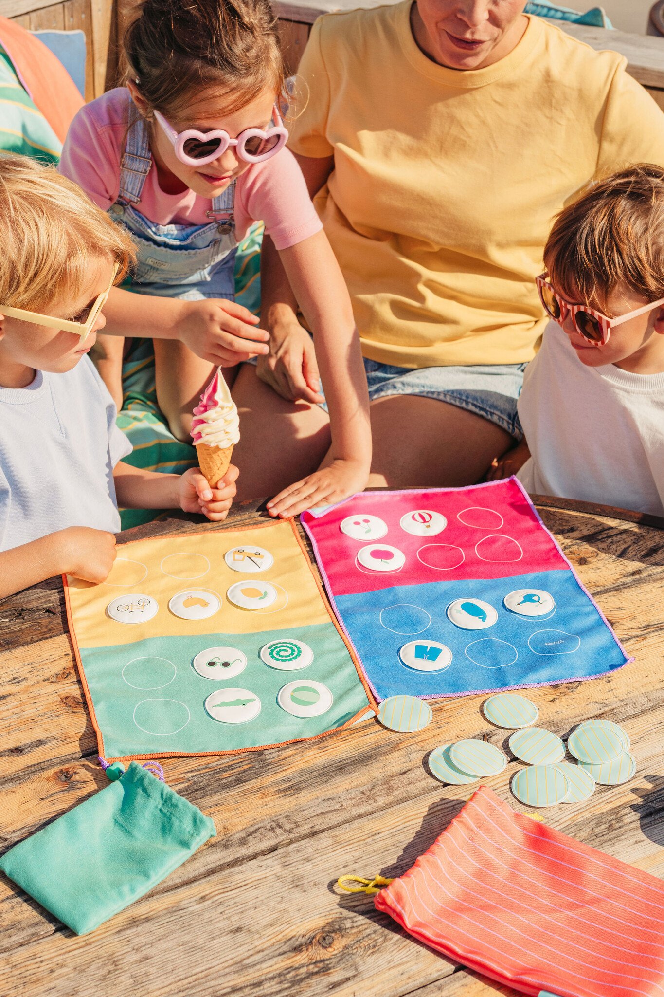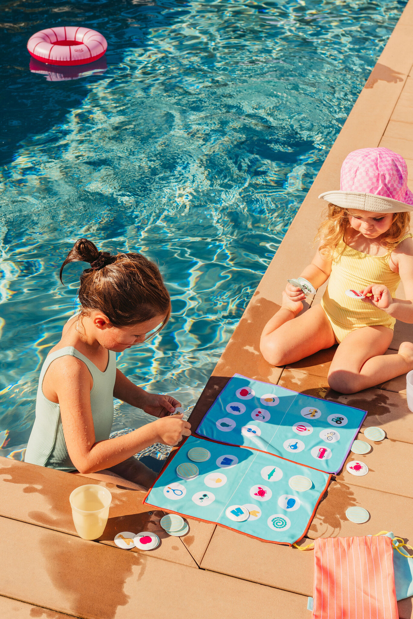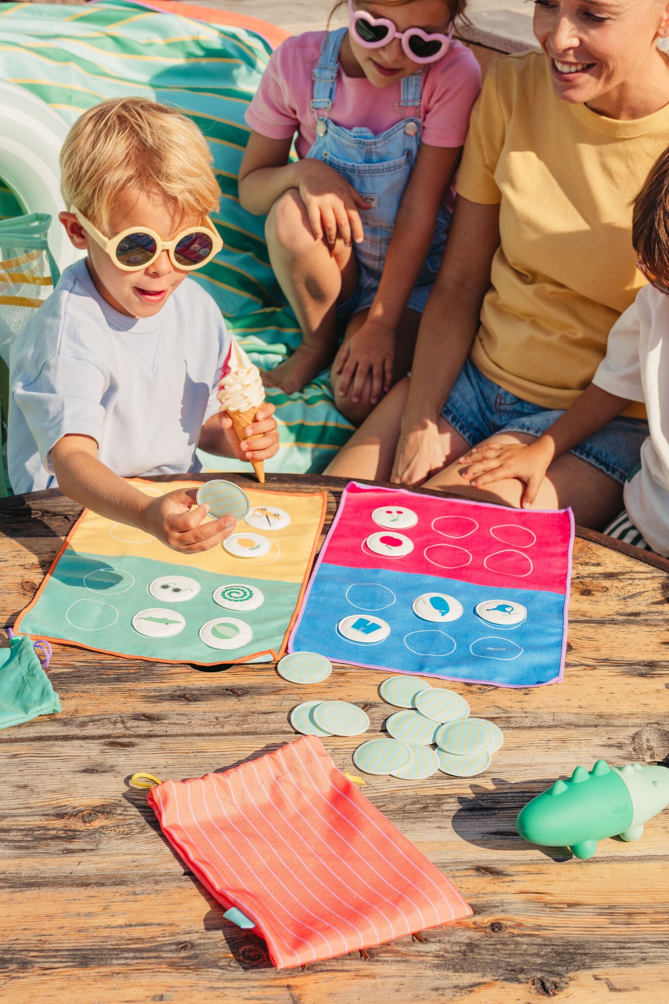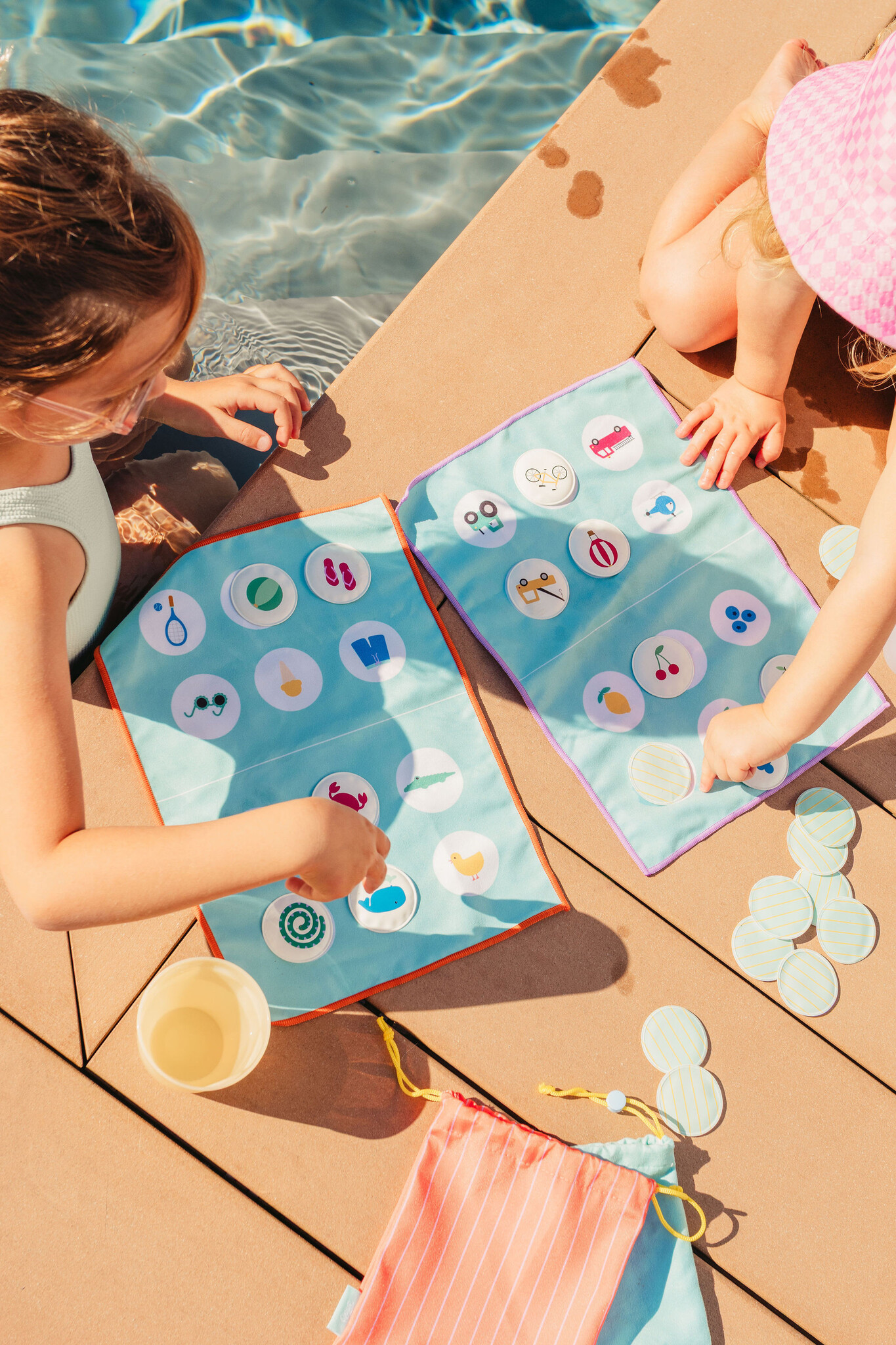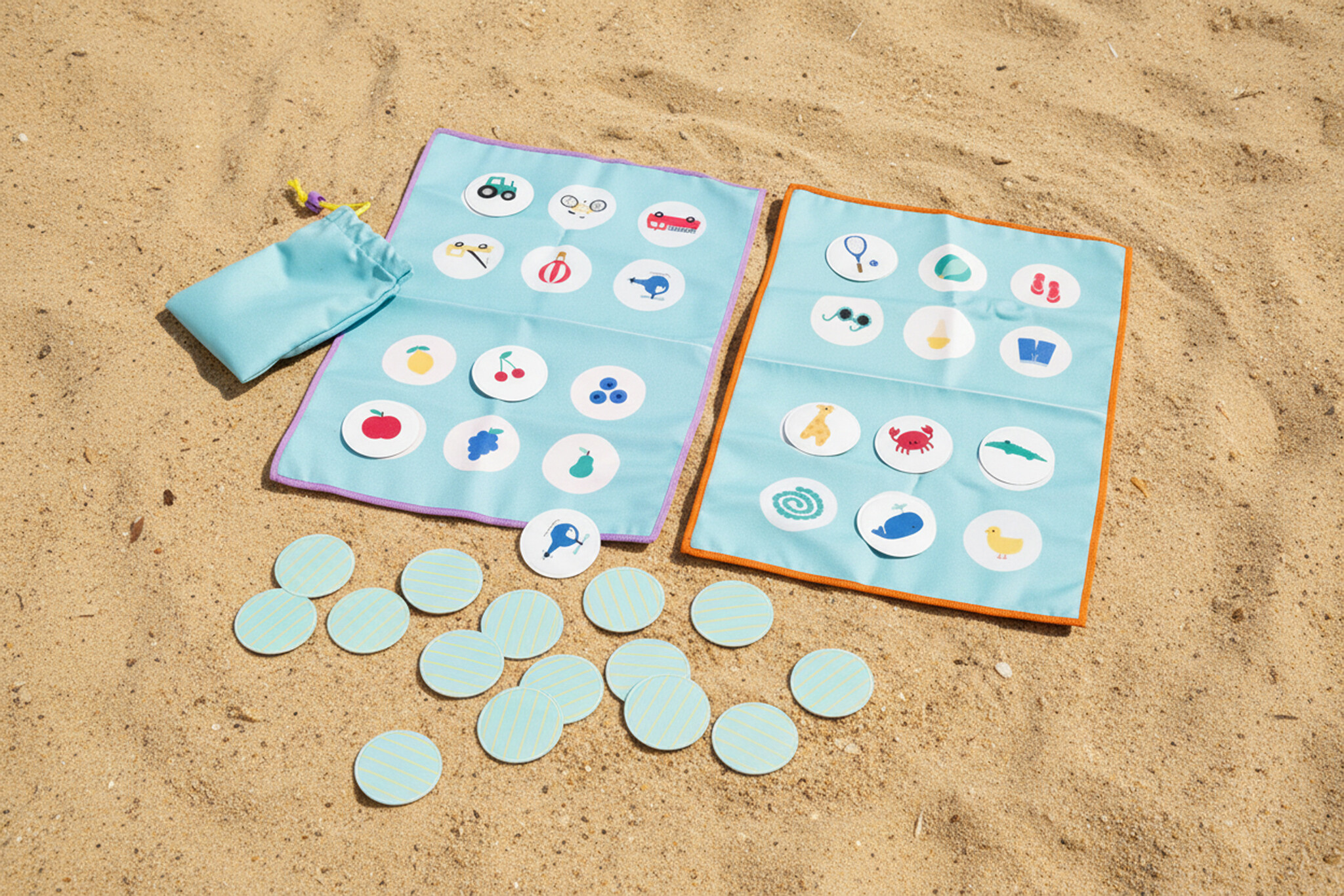 Dit slimme omkeerbare speelbord is gemaakt van zachte, sneldrogende microvezel en wordt geleverd met 24 zwevende waterdichte patches. Ideaal voor natte, zanderige of met snacks bedekte vingers - of je nu thuis bent, in een restaurant, op vakantie, bij het zwembad of op het strand.