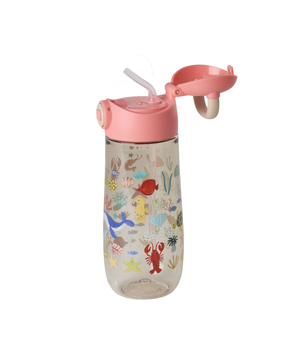 Dorst onderweg? Met deze schattige kinderdrinkfles met roze "Oceaan" opdruk kun je gemakkelijk onderweg iets te drinken meenemen. Eenvoudig te gebruiken voor kleine vingertjes. En om het nog makkelijker te maken kun je de hele drinkfles in de vaatwasser doen.