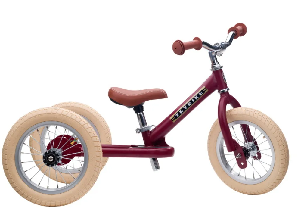 1. Driewieler met veel stabiliteit om te leren lopen en vervolgens te leren rijden.