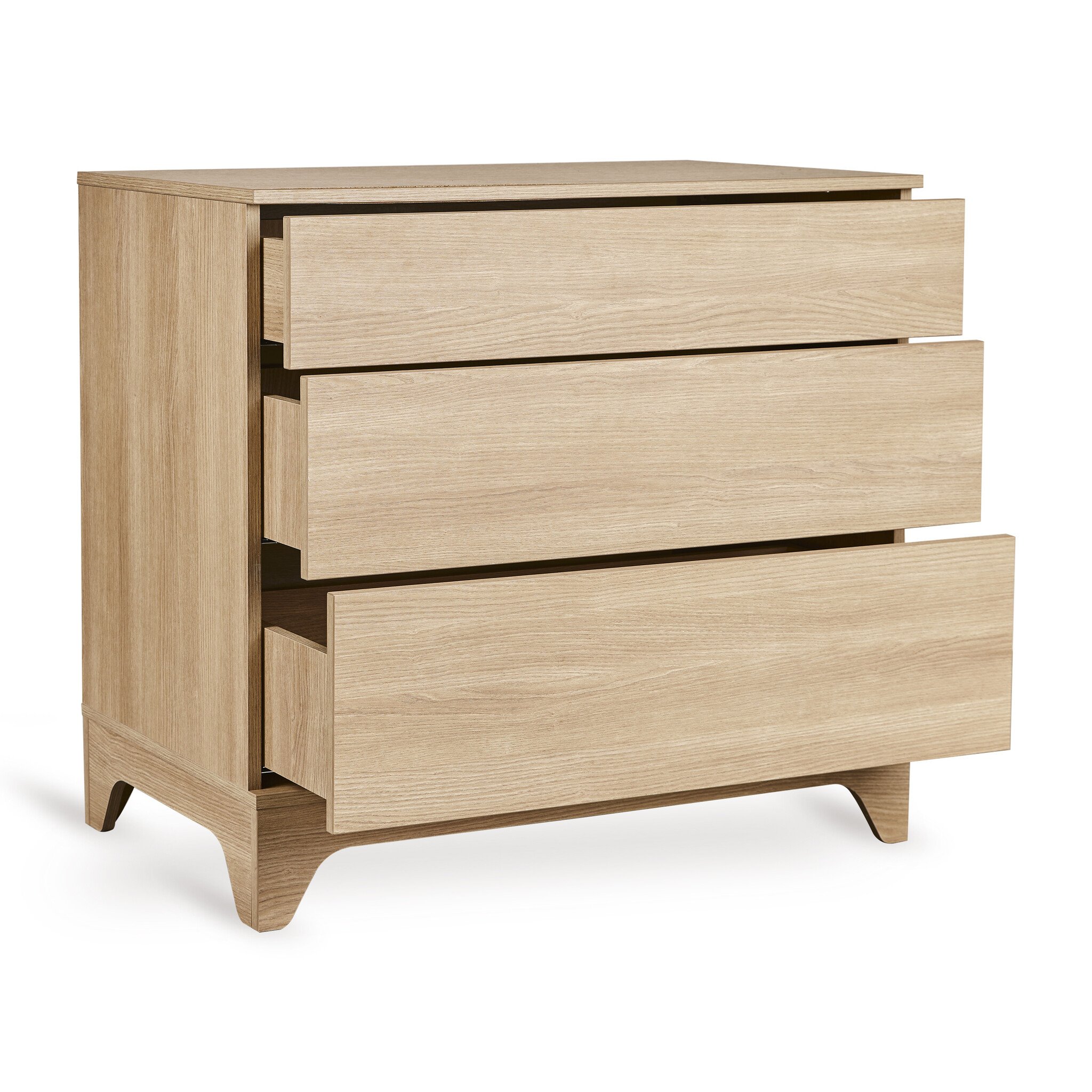 De Tsugi commode biedt veel opbergruimte voor alle dagelijkse verzorgingsspullen zoals luiers, kleding en accessoires. De drie ruime lades openen soepel dankzij het push-to-open systeem, waardoor het meubel niet alleen praktisch maar ook kindvriendelijk is in gebruik.