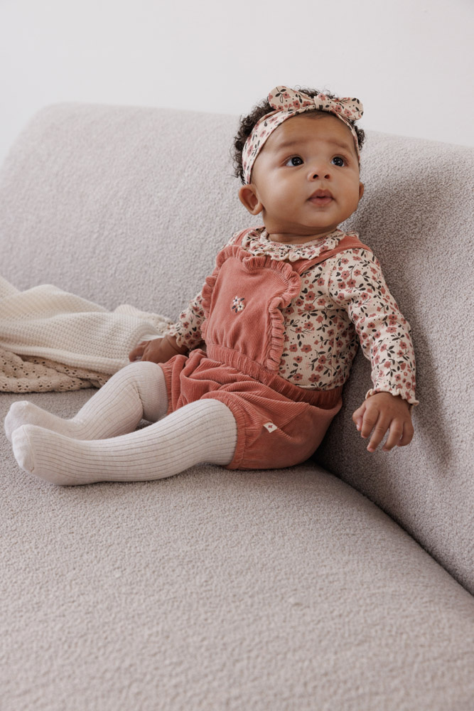 Tuinbroek kort velours rib - Woodland Bloom - Mauve