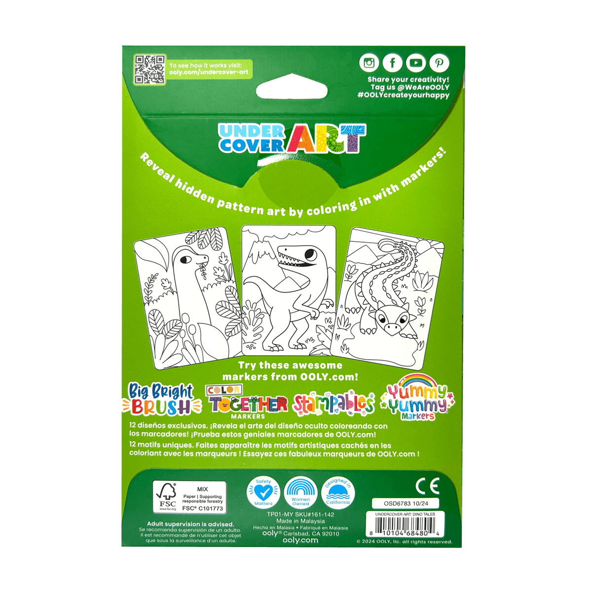 In deze creatieve activiteitenset kunnen kinderen aan de slag met het inkleuren van pagina’s waarop dinosaurussen iets te verbergen hebben — en alleen een stift kan hun geheimen onthullen! Met elke streek verschijnen er verborgen patronen in het ontwerp, waardoor gewoon kleuren verandert in een superleuk mysterie om op te lossen. De set bevat twaalf dino-tastische ontwerpen die je kind gegarandeerd urenlang zoet houden! Ideaal om mee te nemen voor onderweg of op drukke middagen.