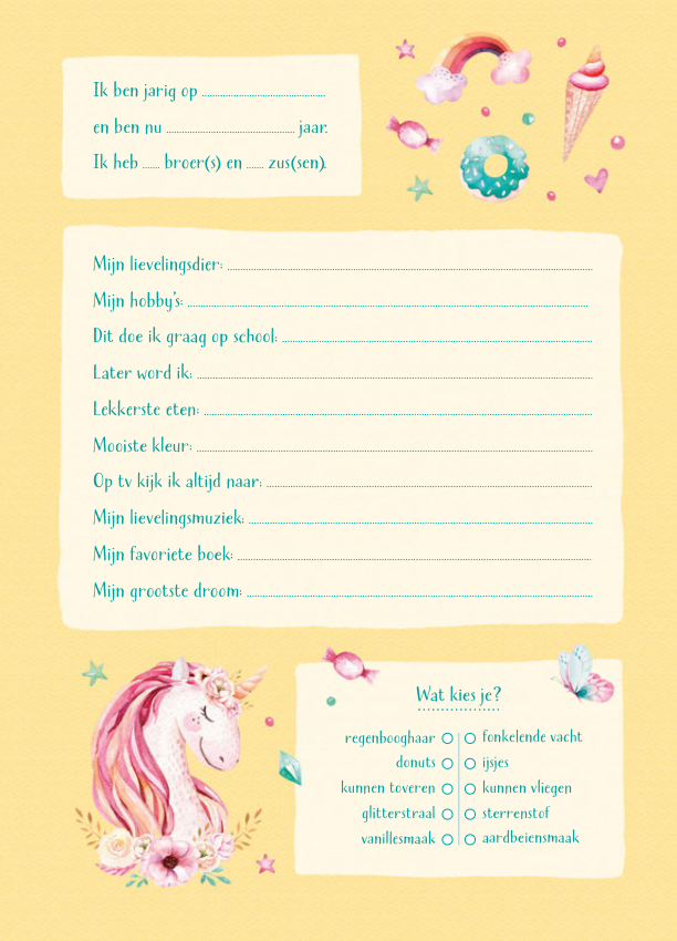 Welke eenhoornnaam hebben jij en jouw vrienden? Ontdek het vooraan in dit boek!