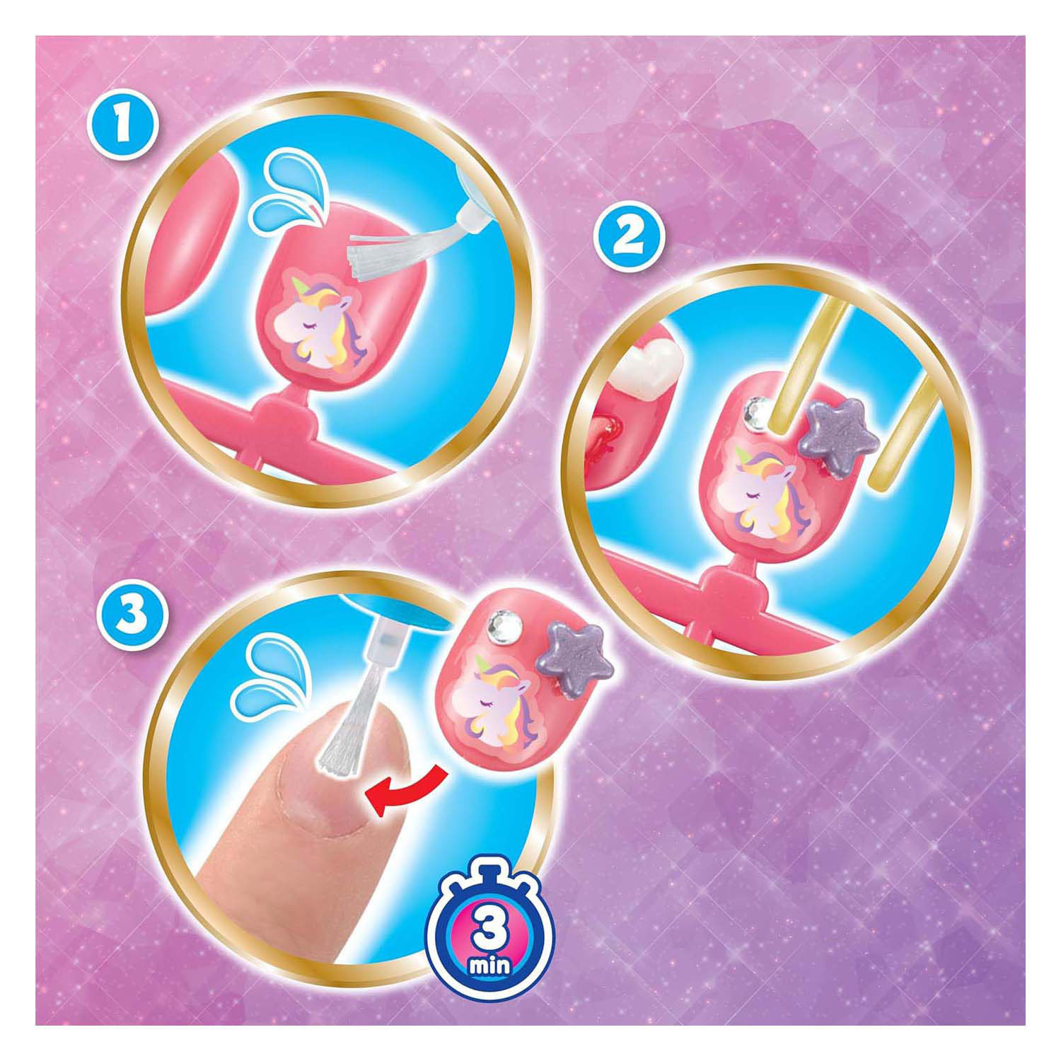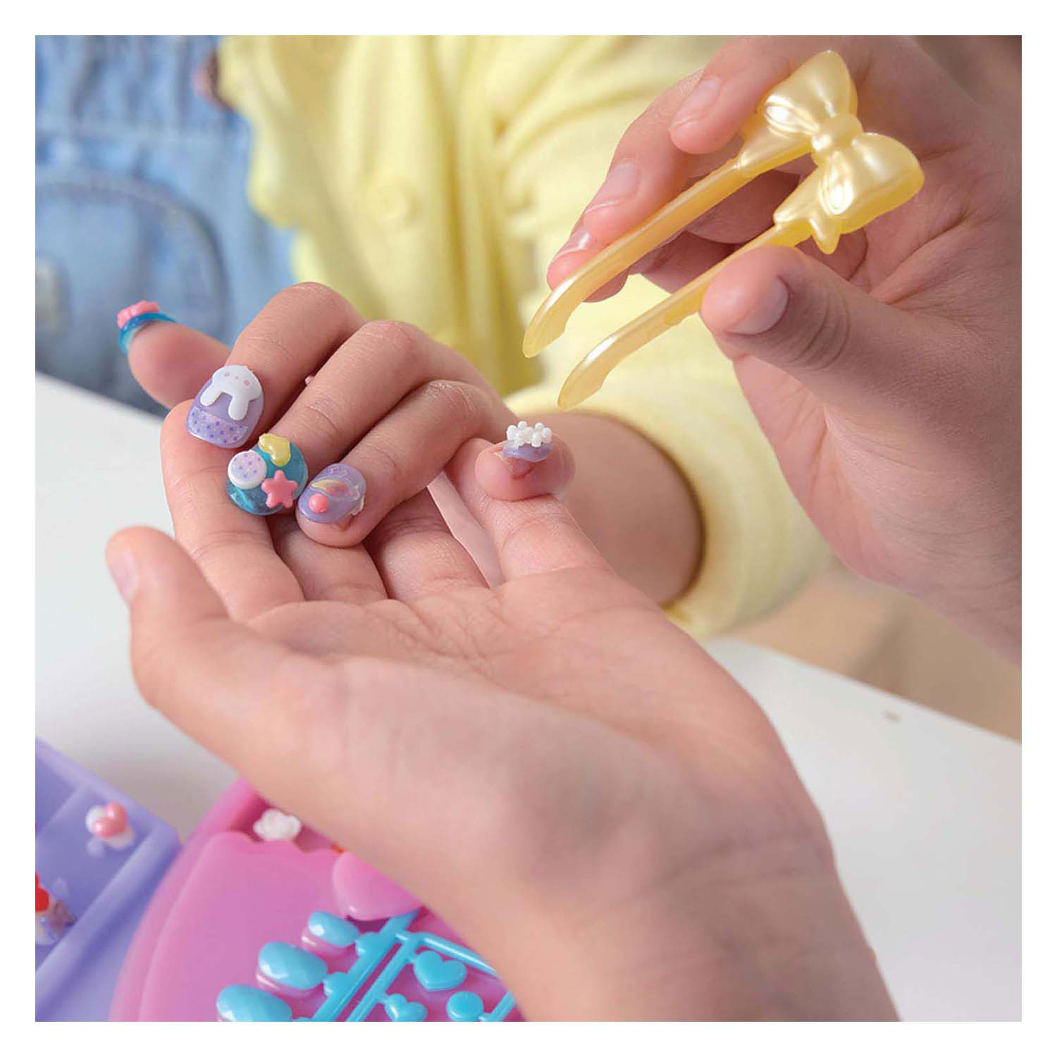 Met de nieuwe Aquabeads Nail Studio-lijn kun je mooie Aquabeads-nagels maken door gewoon kraanwater te gebruiken om je creaties te maken en te dragen! De Aquabeads Nagelstudio - Design ‘n’ Display Nagelstudio bevat Aquabeads nagels en decoraties voor meer dan 60 nagelontwerpen, een werktafel, een plastic pincet, een waterapplicator met penseel, stickers, een displaystandaard en instructies. De glanzende kleur Aquabeads-nagels en -versieringen voegen een glitterend en glinsterend gevoel toe aan uw Aquabeads-nagelcreaties! Maak volgens het ontwerpblad mooie nagelontwerpen met motieven zoals een ster, lint, dier, fruit, bloem en nog veel meer. Plaats de decoraties met behulp van de waterapplicator op de Aquabeads-nagels om ze te versieren en ze op magische wijze aan elkaar te laten plakken! Wanneer de creaties na 3 minuten volledig gedroogd zijn, haal je de creatie voorzichtig van de loper zodat ze klaar zijn om te dragen! Aquabeads-nagels blijven met water op uw vingernagels zitten, met een wachttijd van 3 minuten. Wanneer u de creaties van uw vingernagels verwijdert, duwt u de creaties voorzichtig vanaf de zijkant omhoog. Alle nagelcreaties van Aquabeads zijn herbruikbaar en meerdere keren te dragen! Het voltooide nagelontwerp kan worden weergegeven op de meegeleverde displaystandaard. Inclusief Aquabeads nagels en decoraties voor meer dan 60 nagelontwerpen, werktafel, plastic pincet, waterapplicator, sticker, ontwerpblad en instructies. Voor kinderen vanaf 4 jaar.