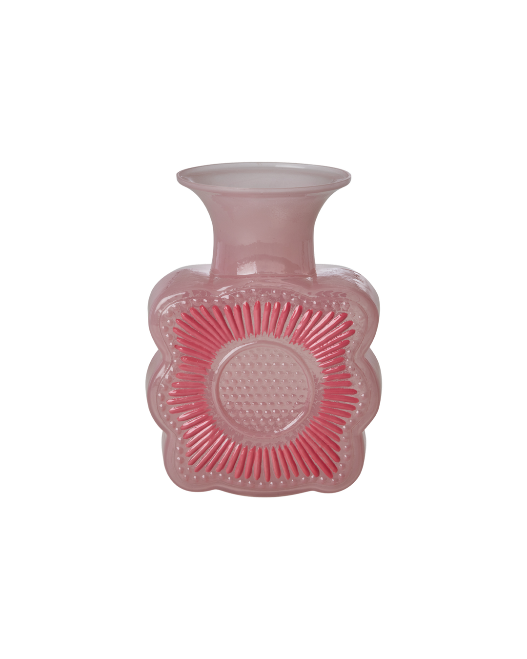 Lief en eigenzinnig vaasje in een prachtige roze kleur met een bloemmotief. Het is gemaakt van glas en perfect voor een klein boeketje met zowel verse als gedroogde bloemen!