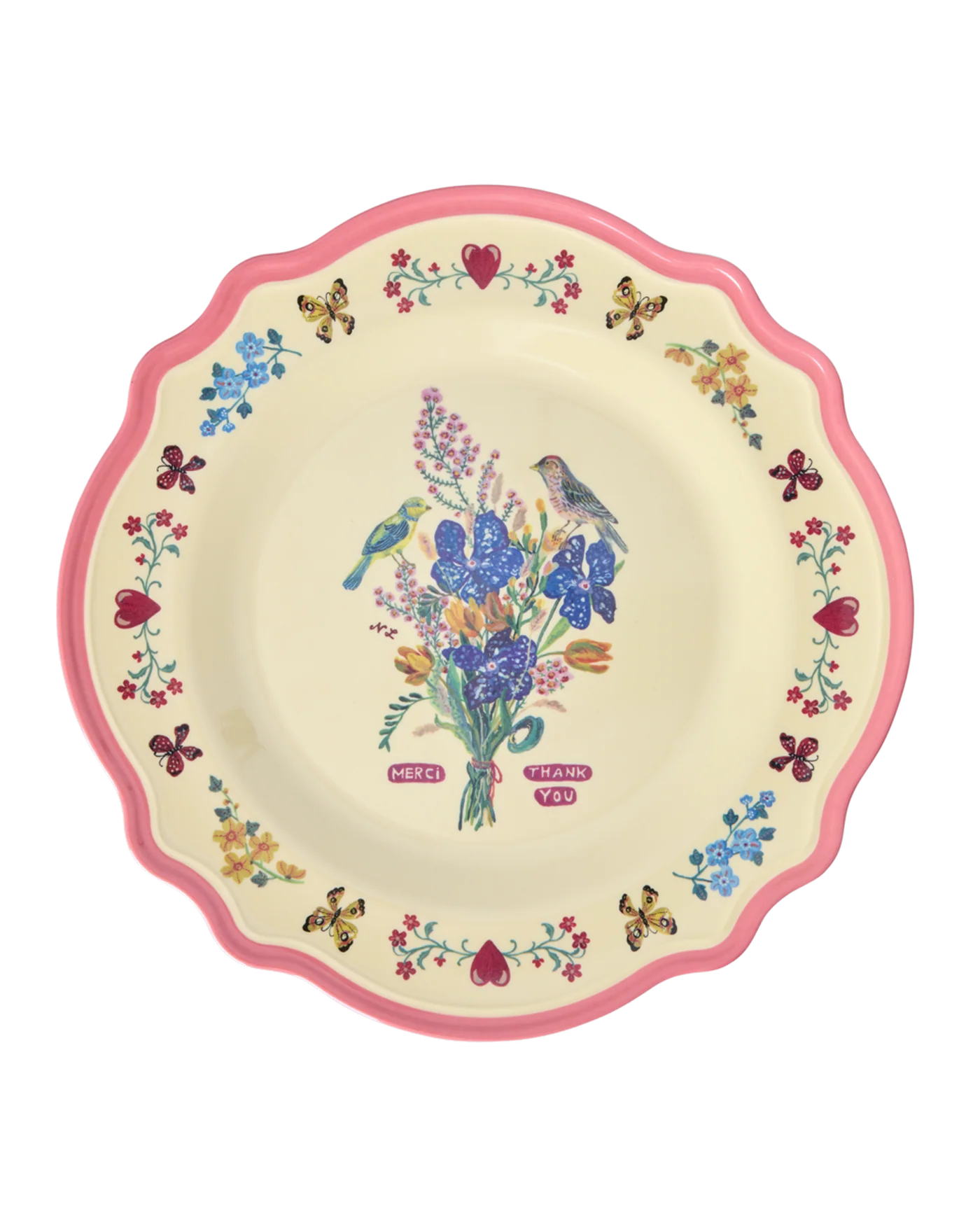Een fantastische samenwerking: rice X Nathalie Lété – samen toveren ze het alledaagse om tot kleine, magische momenten ... elk bord! Dit prachtige bord heeft een vintage-geïnspireerde rand en een boeket bloemen in het midden. Het bord is gemaakt van melamine, dat duurzaam en ideaal voor dagelijks gebruik is, omdat het sterk en makkelijk schoon te maken is. Let op: het product is niet geschikt voor de magnetron.