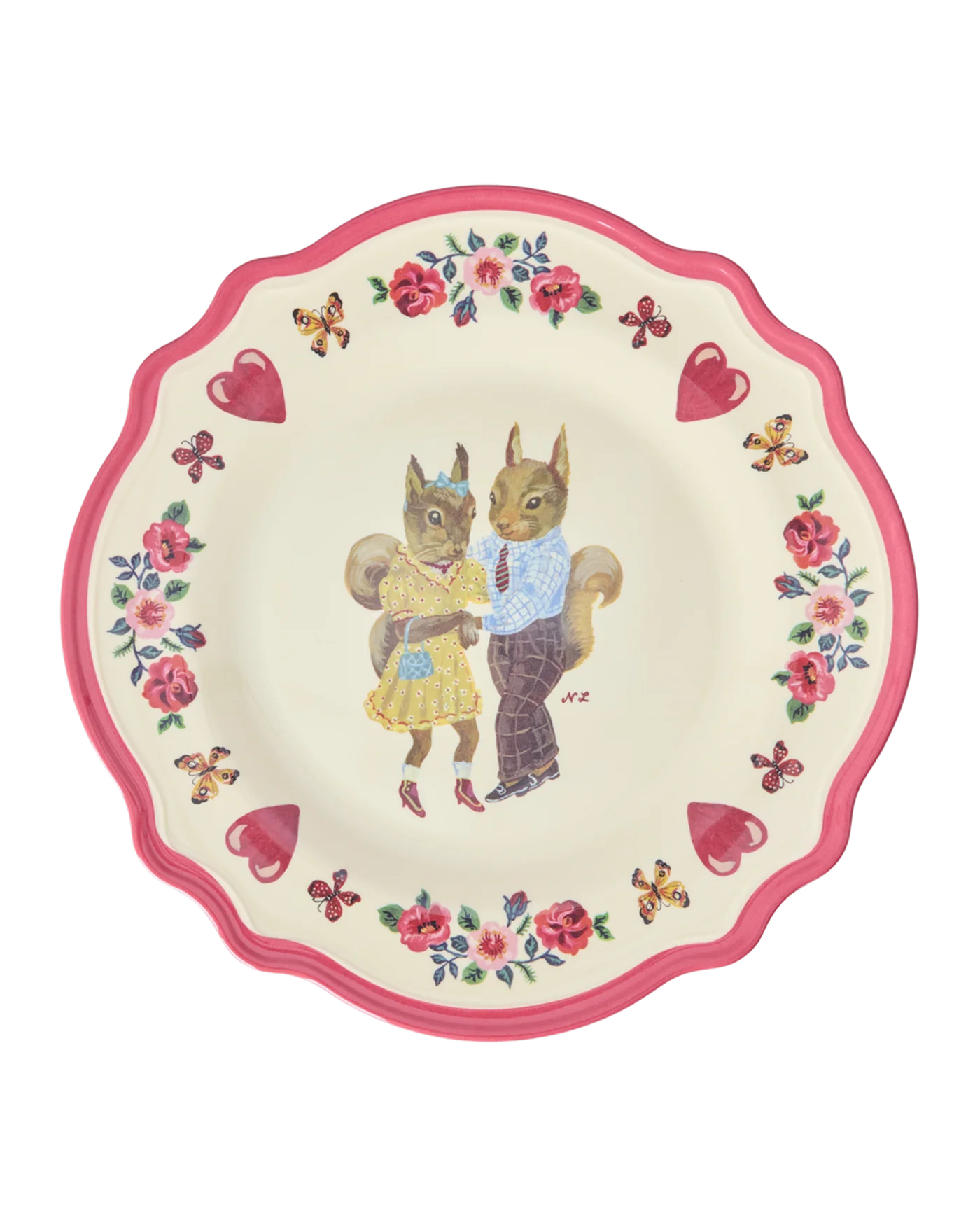 Een fantastische samenwerking: rice X Nathalie Lété. Samen toveren ze het alledaagse om tot kleine, magische momenten ... elk bord! Dit prachtige bord heeft een vintage-geïnspireerde rand en een paar dansende eekhoorns in het midden. Het bord is gemaakt van melamine, dat duurzaam en ideaal voor dagelijks gebruik is, omdat het sterk en makkelijk schoon te maken is. Let op: het product is niet geschikt voor de magnetron.