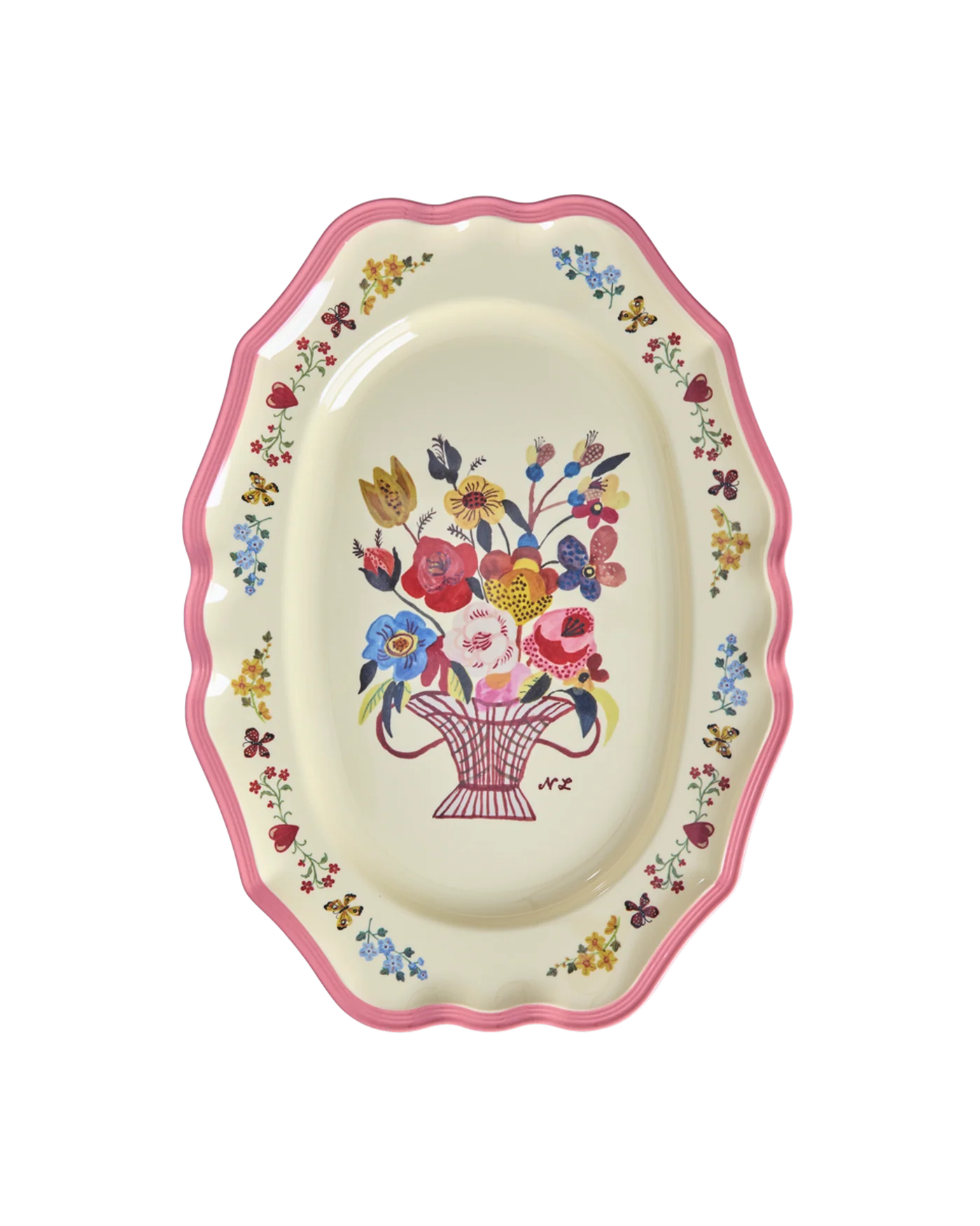 Serveer je heerlijke eten in een vintage-geïnspireerde schaal. De schaal heeft prachtige bloemendetails die ontworpen zijn door Nathalie Lété. De schaal is van melamine en de afmetingen zijn B27 x L36.5 cm, dus er is genoeg ruimte voor heel veel lekkers. Melamine is duurzaam en ideaal voor dagelijks gebruik, omdat het sterk en makkelijk schoon te maken is.