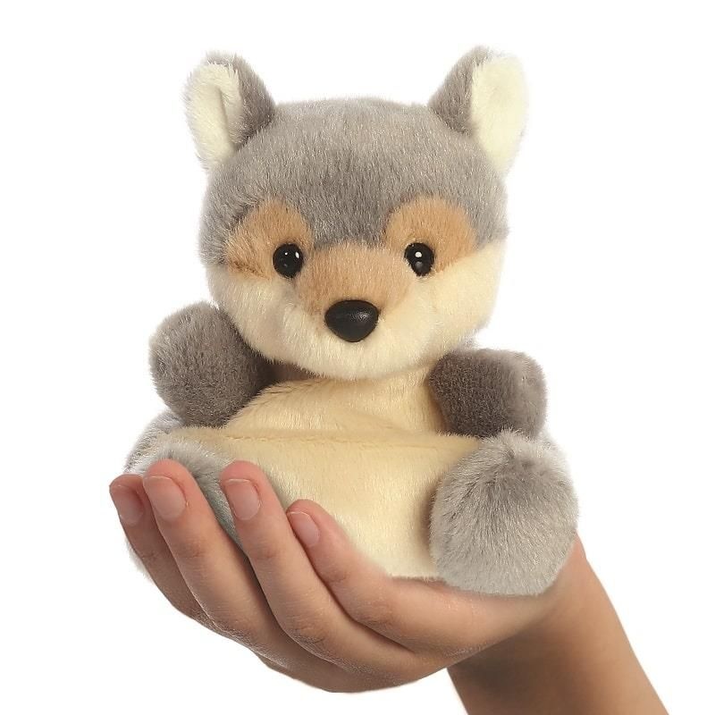Palm Pals wolf 13 cm. Deze knuffel past in de palm van de hand, is gevuld met bonen waardoor het super zacht en squishy aanvoelt. Verzamel ze allemaal!