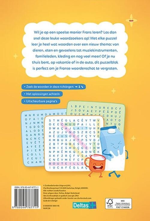 Wil je op een speelse manier Frans leren? Los dan snel deze leuke woordzoekers op! Met elke puzzel leer je heel wat woorden over een nieuw thema: van dieren, eten en gevoelens tot muziekinstrumenten, familieleden, kleding en nog veel meer! Of je nu thuis bent, op vakantie of in de auto, dit puzzelblok met uitscheurbare pagina's is perfect om je Franse woordenschat te vergroten.