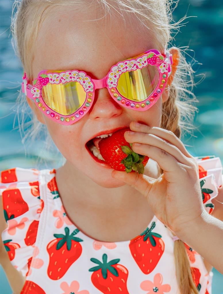Een vrolijke duik begint met de Zwembril - Strawberry Shortcake! De zachte siliconen afdichting sluit comfortabel aan op het gezicht en de verstelbare band zorgt voor eenvoudig opzetten. De lenzen zijn helder dankzij de anti‑fog coating en UV‑bescherming.